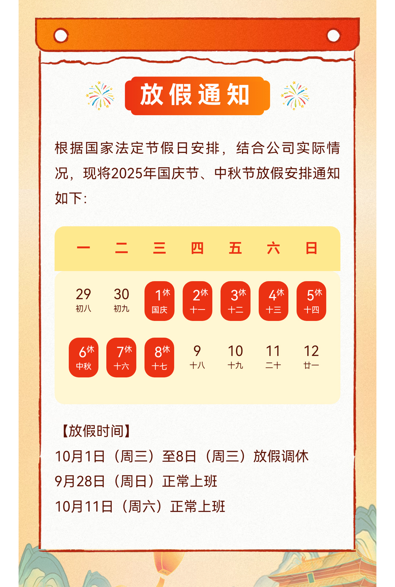 以电流为礼,贺祖国华诞 I 武汉摩恩2025国庆放假通知